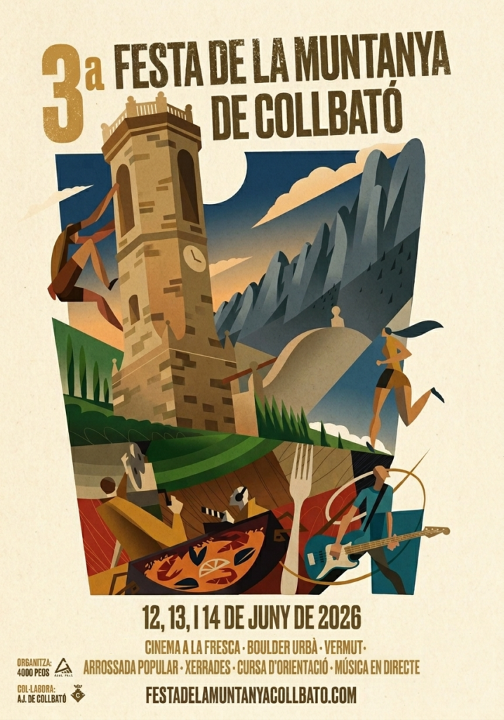 FESTA DE LA MUNTANYA COLLBATÓ FOTOS 2a EDICIÓ LA FESTA BOULDER URBÀ Campionat de boulder pels racons de Collbató.Per tots els nivells i totes les edats. CINEMA A LA FRESCA Projecció del documental:«Montserrat,integral 107« ARROSSADA POPULAR Arrossada i sobretaula amb tertúlia de muntanya CONCERT + FESTA Música en directaSopar + barraDJ +INFORMACIÓ CONTACTEU